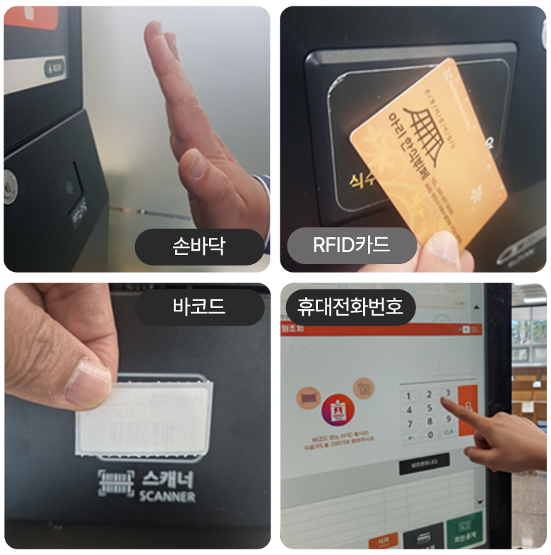 💡 식수인증수단 : 장정맥(손바닥) / 바코드 / 식수카드(RFID) / 휴대 전화번호