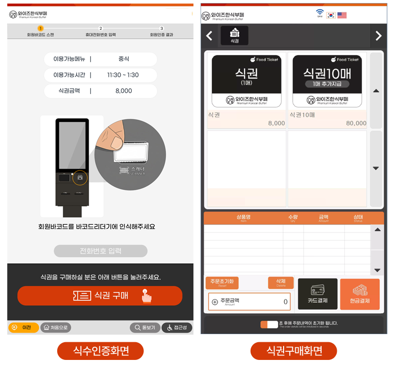 식권판매+식수관리 통합키오스크