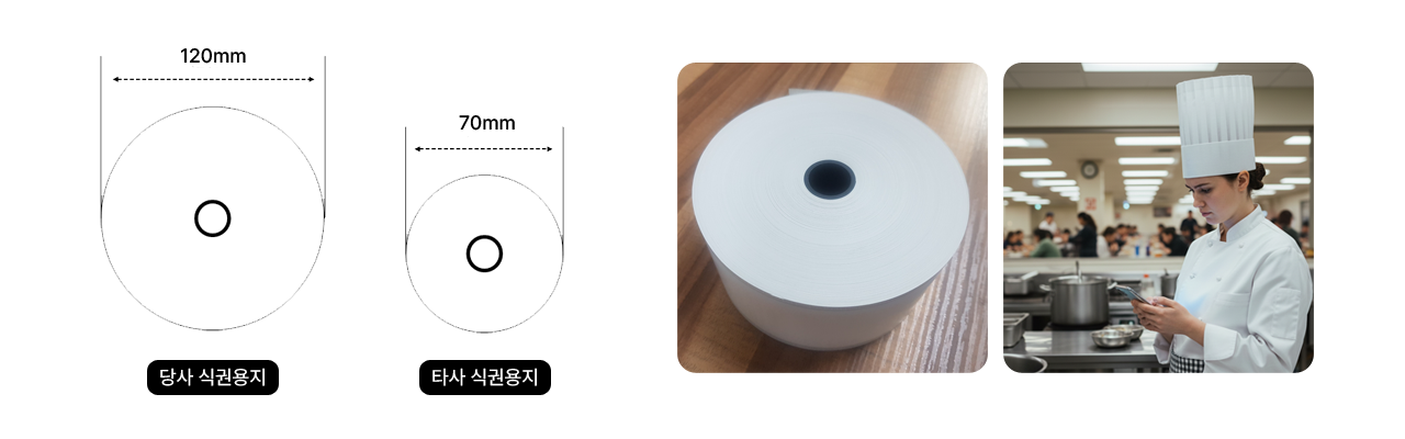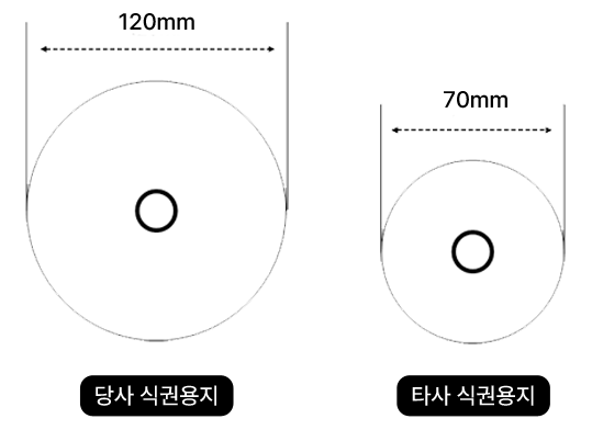 1롤당 약 2000매 출력가능 (식권전용지 기준)