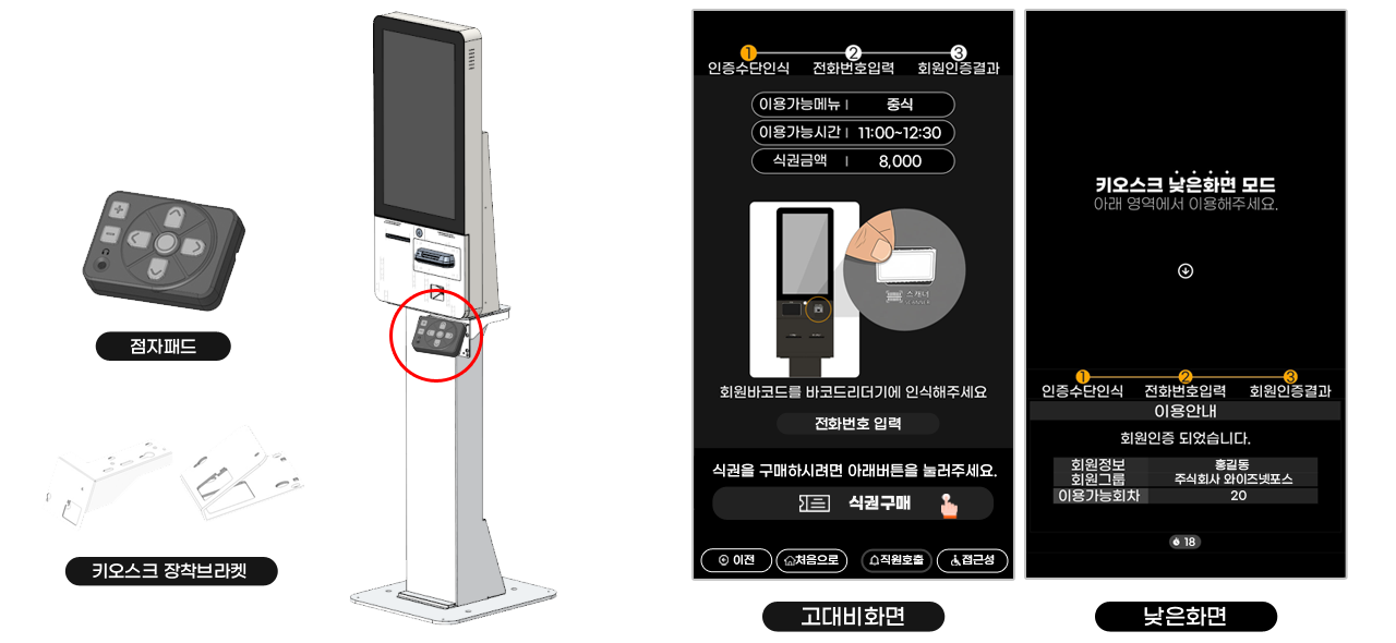 와이즈 식권키오스크 PLUS 제품만 배리어프리 인증되어 있으며,